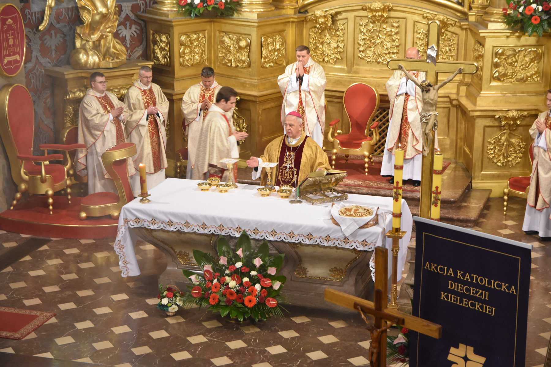 Centralnym punktem obchodów była uroczysta Msza Święta w intencji Akcji Katolickiej, sprawowana w kieleckiej bazylice katedralnej pod przewodnictwem Biskupa Kieleckiego Jana Piotrowskiego. W homilii Ksiądz Biskup podkreślił znaczenie zaangażowania świeckich w misję Kościoła, zachęcając do dalszego świadectwa wiary i odważnej obecności w życiu społecznym. W czasie Mszy Świętej, przedstawiciele Akcji Katolickiej naszej parafii złożyli dary do Ołtarza w uroczystej procesji.